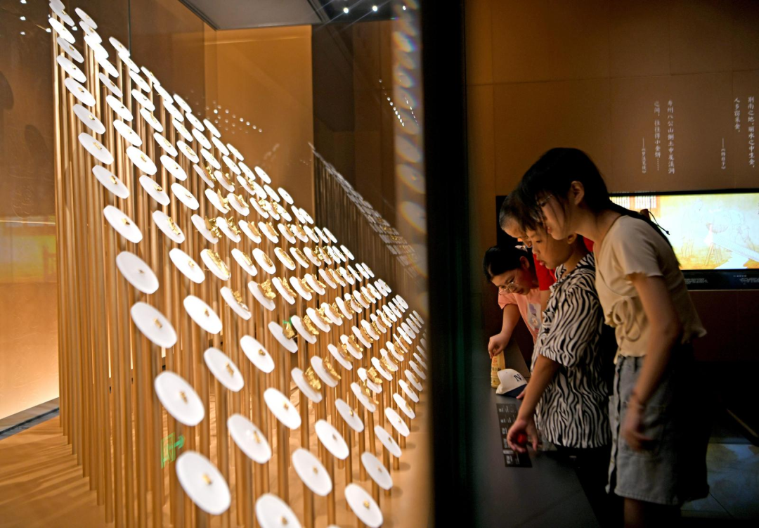 Visitors look at Chu gold coins at Anhui Chu Culture Museum.