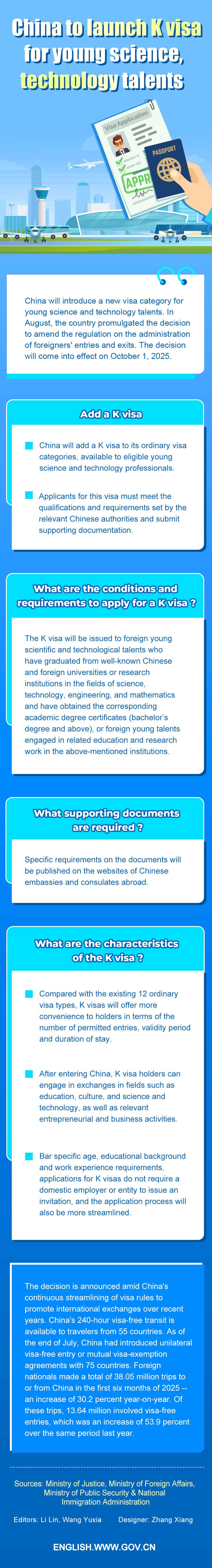 China to launch K visa for young science, technology talents_HUAINAN CHINA
