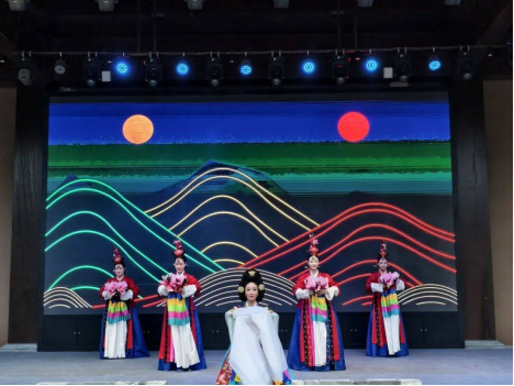 The third chapter “Building a Prosperous Era with One Heart” pushed the performance to its climax. South Korean performances such as Flower Crown Dance and Fan Dance showed exotic charm.
