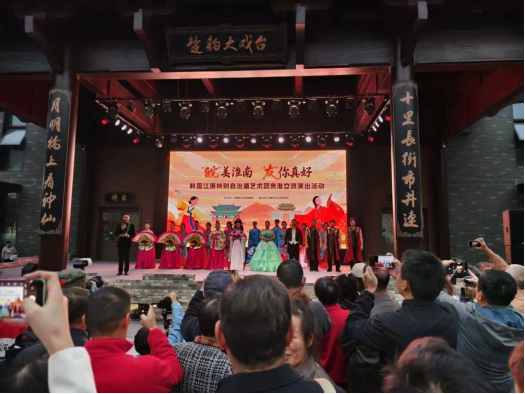 On October 18th, the Beautiful Huainan ·You Are a Nice Friend—Gangwon Province Art Troupe of South Korea performed in Chunshenli Cultural Street of Huainan City. The art performance served as a bridge to make Chinese and Korean cultures exchange through interaction.