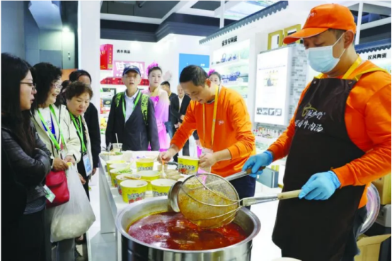 This year’s “Popularity King” booth was undoubtedly Beef Soup Co., Ltd of Huainan Supply and Marketing Group. The hot and steaming “Huainan Beef Soup” cooked on site every day was loved by audience. “Every day, we sell 200 bowls on-site and prepare another 300 bowls for visitors to try, which are in short supply every day.” said Chen Bin, the general manager of the company. “We mainly sell the ‘Huaixiang Niu’ brand Huainan beef soup, and has successfully renewed contracts with old friends Shanghai Qingmei Group and Shanghai Hede Company at this year’s CIIE. At the same time, we have also got in touch with more than 20 potential customers, and our friends continues to expand.” Chen added.