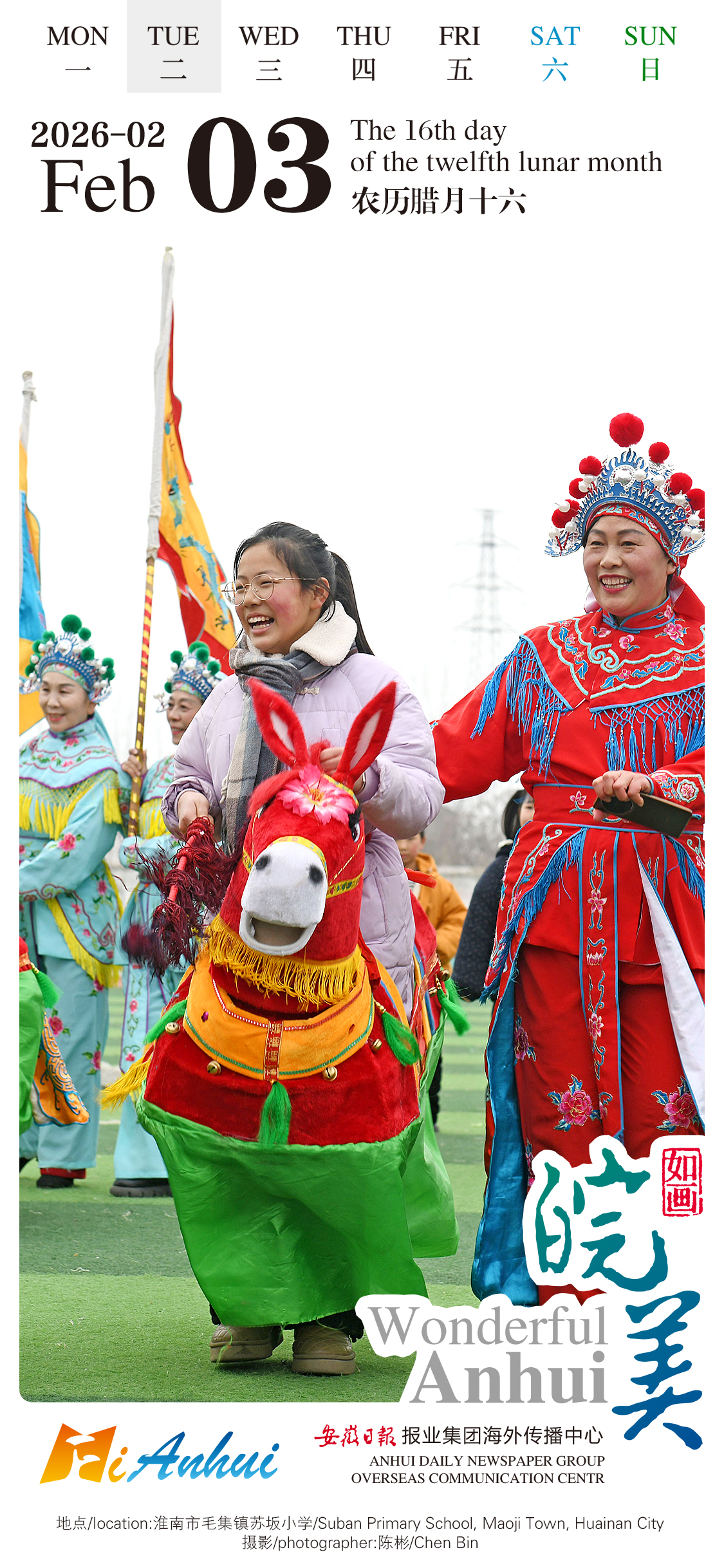 Meet diverse folk customs with the "Wonderful Anhui" English calendar in Suban Primary School, Maoji Town, Huainan City, Anhui. Students experience the intangible cultural heritage up close and immerse themselves in the unique charm of traditional culture.