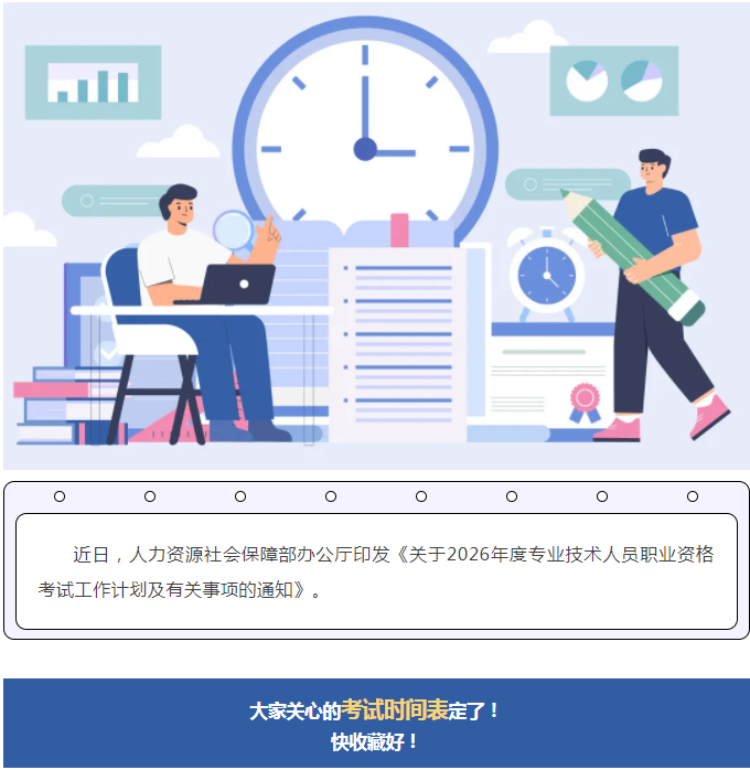 【考试信息】定了!2026年度专业技术人员职业资格考试时间表公布→