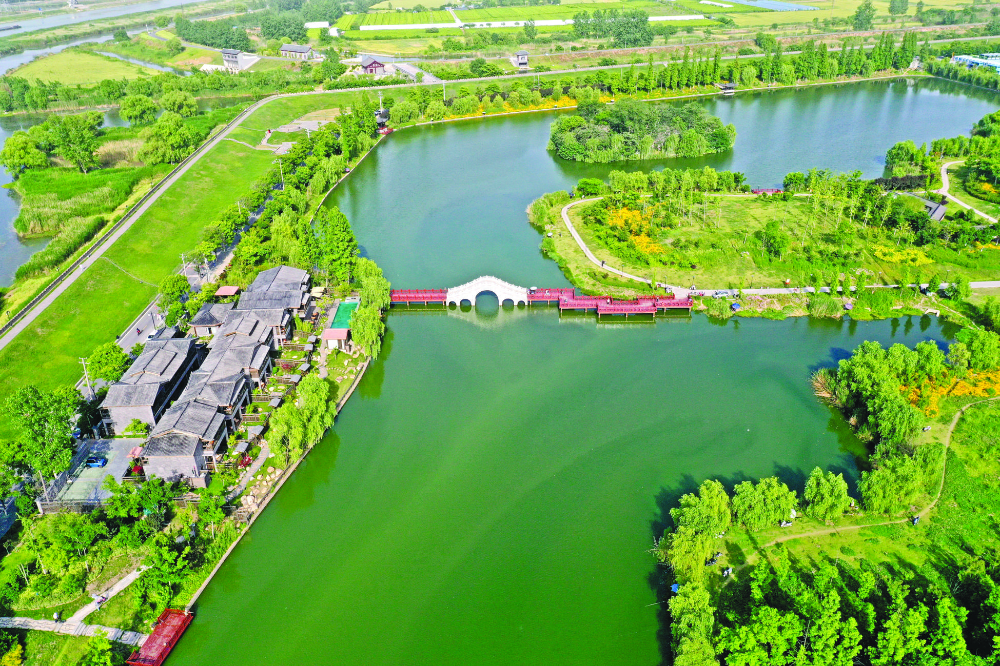 初夏时节,寿县古城墙环绕下的拐角塘绿意盎然,廊桥、鸟岛、民宿点缀其间,美不胜收,吸引全国各地游客打卡畅游。