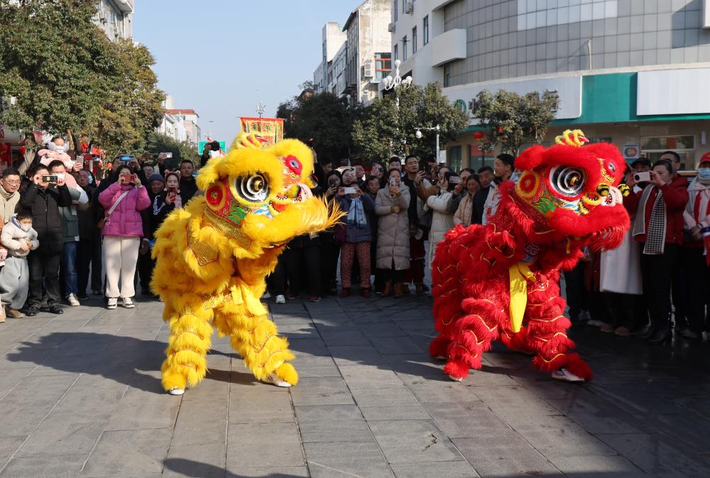 南大街上的狮舞表演。