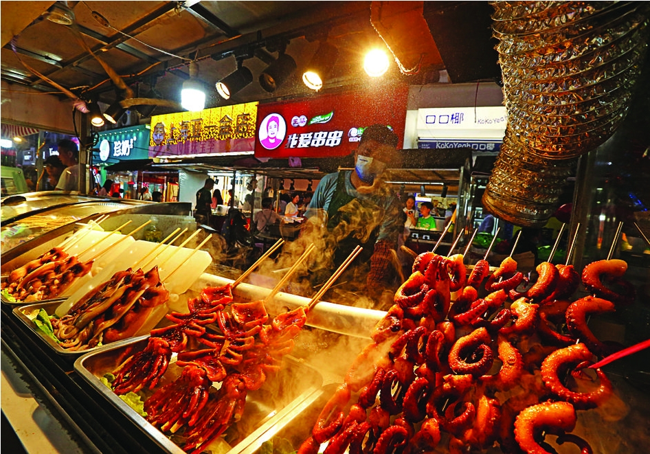 市民在夜市品尝各种小吃。