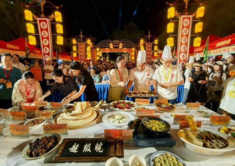 9月5日晚,“超级皖”难忘淮·寻味寿州美食争霸赛在寿县箭道巷美食街举行。活动旨在挖掘本地特色美食,推广地域饮食文化,搭建多维消费场景,撬动农文旅体商深度融合,激发消费新活力,并选拔优胜选手参加市级比赛。图为活动现场。