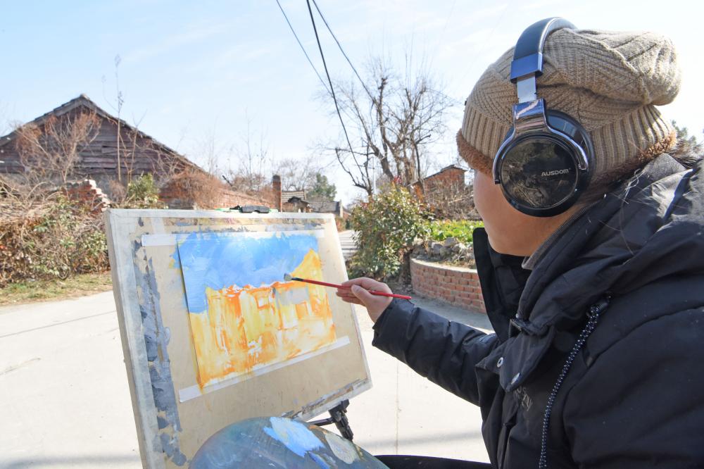 一名大学生通过画笔记录《六姊妹》拍摄地老建筑风貌。