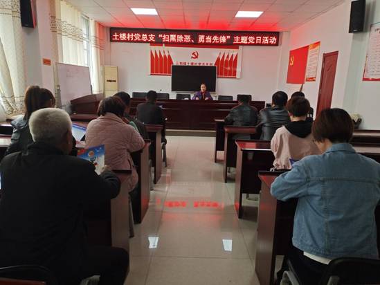 高新区三和镇土楼村党总支为不断推动扫黑除恶专项斗争向纵深开展,在扫黑除恶专项斗争中进一步发挥党员先锋模范作用,11月6日,村党总支开展了"扫黑除恶、勇当先锋”主题党日活动。