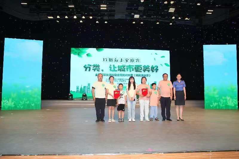 本场比赛分为初选赛、总决赛两个阶段,设有“小试牛刀”个人赛、“突围时刻”抢答赛、“极限分类”冲刺赛、“冲刺巅峰”冠军赛等环节。此前已经通过市民自荐、单位推荐、县区选拔等方式挑选出的12个家庭参加本场比赛,每个参赛家庭由3名成员组成,儿童年龄为10-12周岁(中小学年龄阶段)。比赛中,12个参赛家庭精神饱满、斗志昂扬、反应敏捷,展示了丰富的垃圾分类知识储备和应对能力。最终,经过激烈角逐,共评选出家庭赛一等奖1个、二等奖2个、三等奖3个、优秀奖6个,参加活动的领导为获奖家庭颁发了获奖证书。下一步还将按照规则和程序,从获奖家庭中择优推荐参加全国城市生活垃圾分类知识大赛家庭组总决赛。