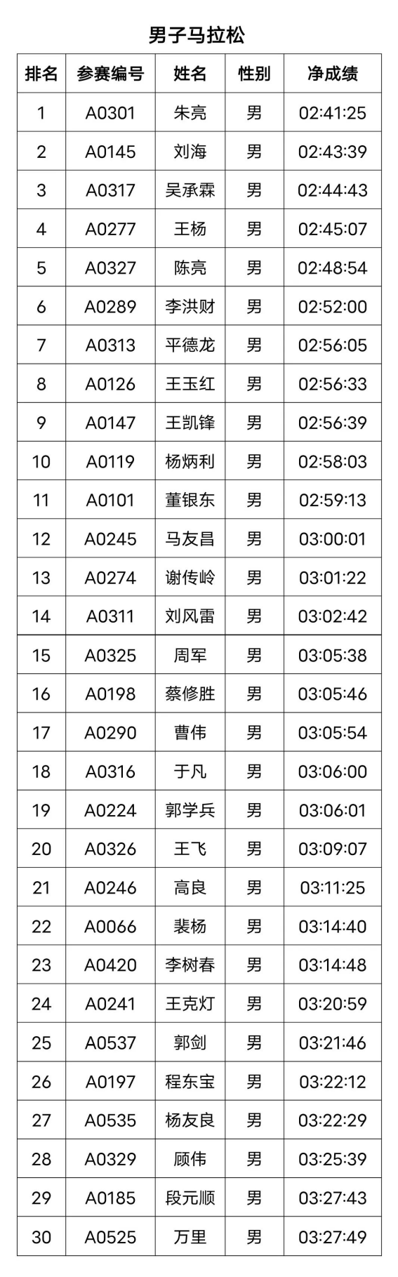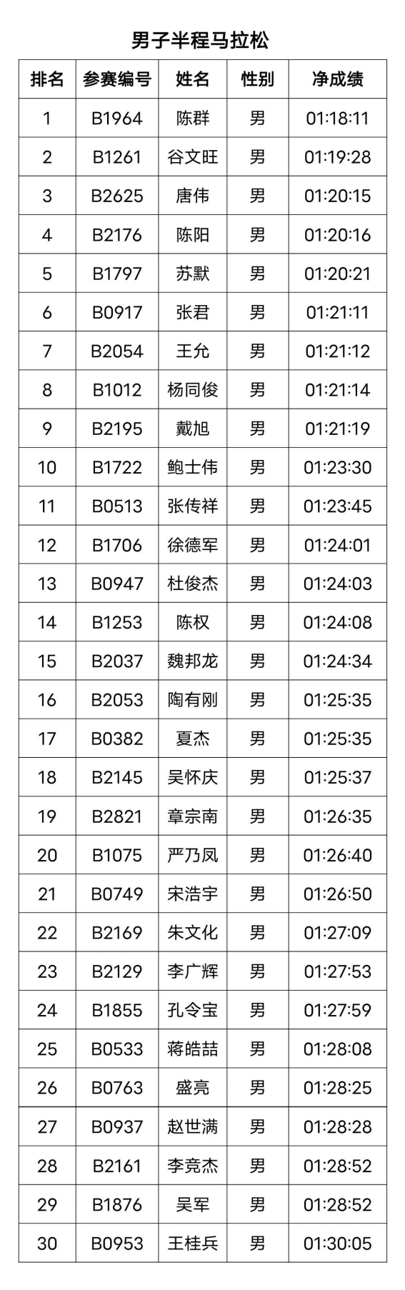 男子半程马拉松