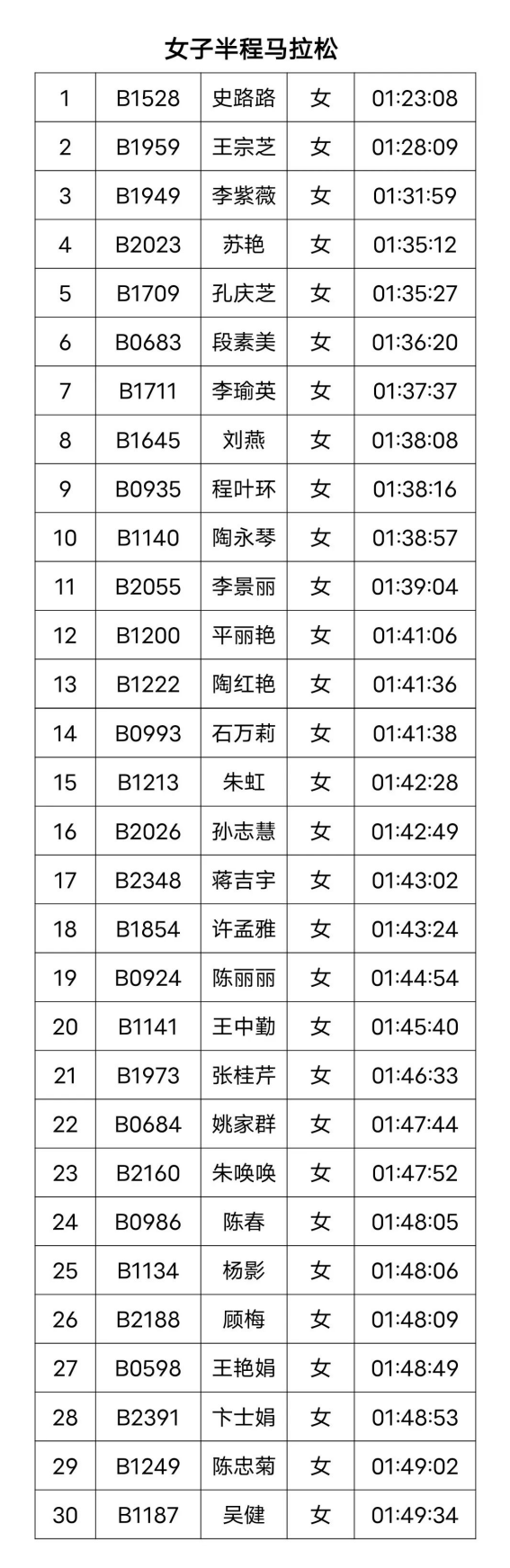 女子半程马拉松
