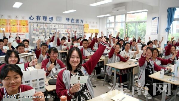 6月4日,淮南二中高三学生在最后一节班会课上开心领取准考证,自信迎接高考。“最后一课”上,老师耐心讲解高考注意事项,分享毕业蛋糕,祝福学生为梦想拼搏。(记者 陈 彬 摄)