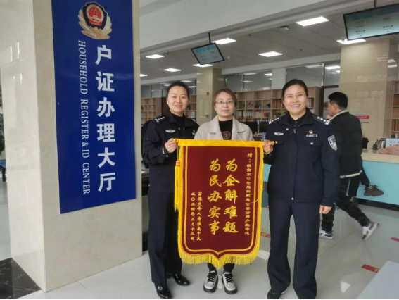 “为企解难题 为民办实事”,3月13日,淮南市田家庵政务服务大厅里,田家庵分局户政民警岳晓红从富德生命人寿保险公司淮南分公司员工手中接过一面锦旗。这家总部设在深圳的保险公司感谢民警为他们解决了困扰公司很久的难题。