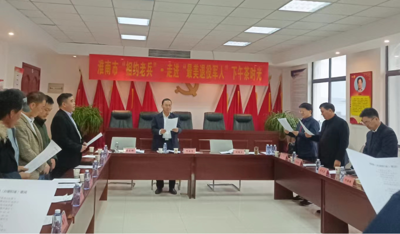 建优服务保障体系,联系老兵“用情”。百听不厌是军乐,常唱不衰是军歌。在“相约老兵”茶会活动现场,退役老兵们齐唱《打靶归来》、《团结就是力量》等一系列经典红色歌曲,一首首军歌唱出了“退伍不褪色,退役不退志”的精神风貌,系列茶会在嘹亮的军歌中达到高潮。淮南市第三届“最美退役军人”、八公山区土坝孜街道党工委副书记陶琳在茶会现场动情地说:“通过此次系列茶会活动,深感作为退役军人和基层工作者,要厚植为民情怀,继续发扬服从、团结、务实、坚守的精神”;淮南市第四届“最美退役军人”邸维山是寿县自然资源和规划局耕地保护监督股的一名普通科员。2022年4月,邸维山成功捐献324ml造血干细胞悬混液,为远在重庆的患者送去珍贵的“生命种子”。在茶会交流中他表示:“今后将化荣誉为动力,不忘初心,牢记使命,争取以更大成绩为党旗添彩、为党徽争光”。他还呼吁:“广大退役军人要参与到‘三献’工作中,让公益的‘爱心种子’在更多人的内心扎根生长”。淮南市扎实开展服务保障体系建设“五有”全覆盖“回头看”。目前,淮南市共建成四级退役军人服务中心(站)1203个。按照“五有”要求,所有基层服务(中心)站设有专门办公场所、有专人负责退役军人工作。全市已有257家全国示范型退役军人服务中心(站)创建达到标准,全市服务保障机构功能更加完善,实现从“有”到“优”。